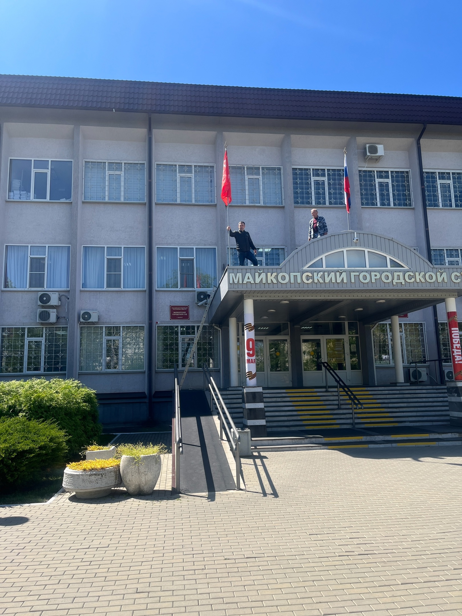 Сегодня, на здание Майкопского городского суда поднято Знамя Победы(копия). Знамя Победы — штурмовой флаг Идрицкой стрелковой дивизии, водружённый 1 мая 1945 года на крыше здания рейхстага в городе Берлине. Знамя Победы является официальным государственным символом победы советского народа и его Вооружённых Сил над фашистской Германией в Великой Отечественной войне, государственной реликвией России. ![]() |